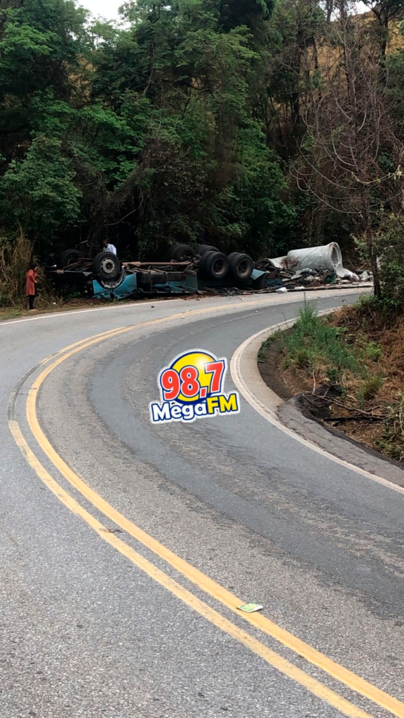 Mais um acidente foi registrado na manhã desta terça-feira (14) na descida da Serra da Moeda. Um caminhão que transportava manilhas tombou em um dos trechos da rodovia.