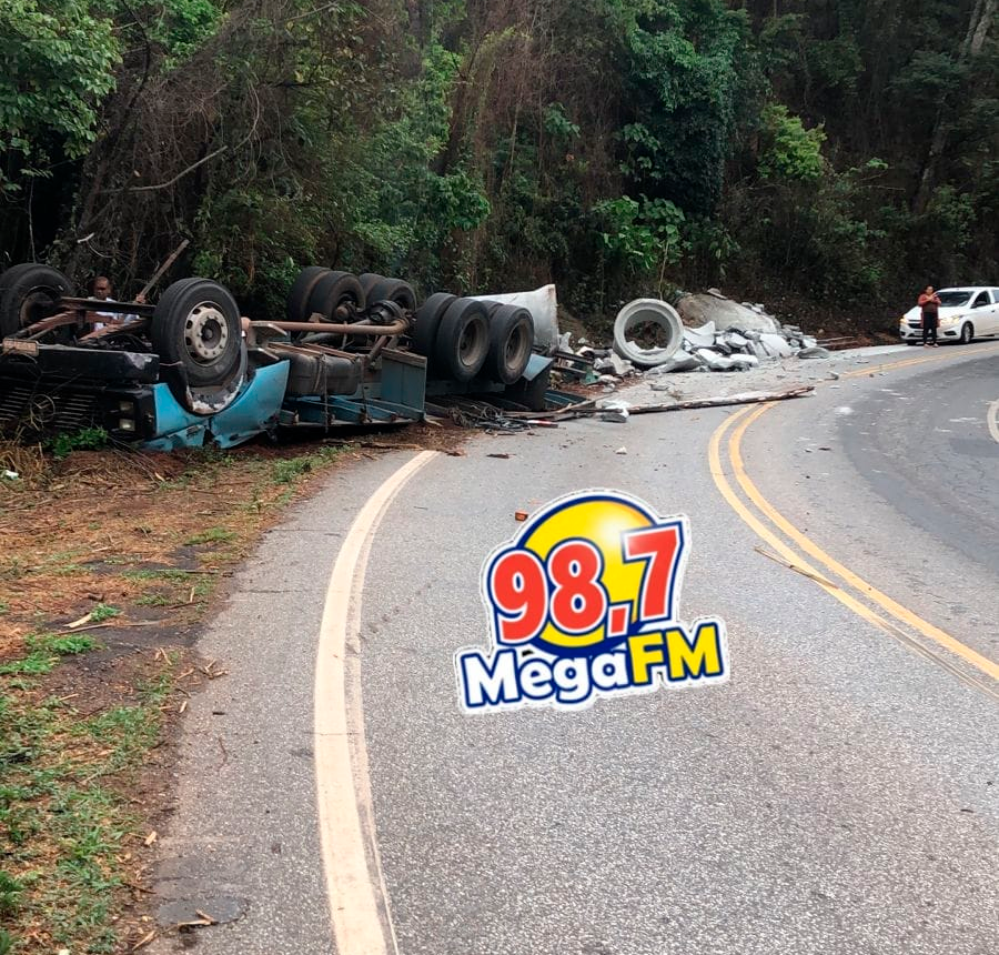 Mais um acidente foi registrado na manhã desta terça-feira (14) na descida da Serra da Moeda. Um caminhão que transportava manilhas tombou em um dos trechos da rodovia.
